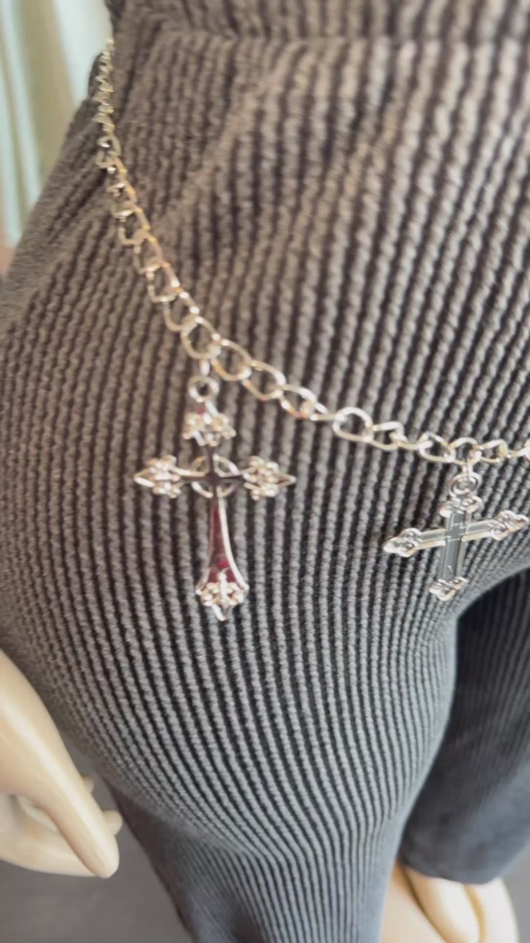 The “Cross Em Up” platinum chained belt Is a must have for your jewelry and accessory collection available and silver color